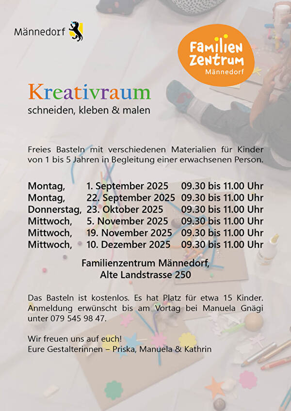 Das Basteln ist kostenlos. Es hat Platz für etwa 15 Kinder.