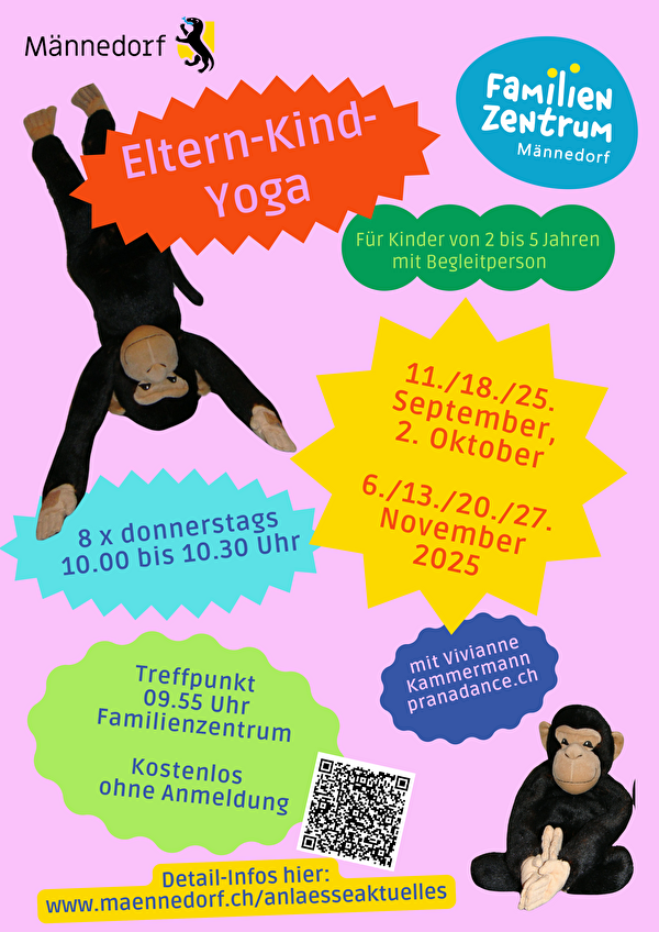 Am Eltern-Kind-Yoga können Familien spontan und ohne Anmeldung, auch nur an einer einzelnen Lektion teilnehmen.
