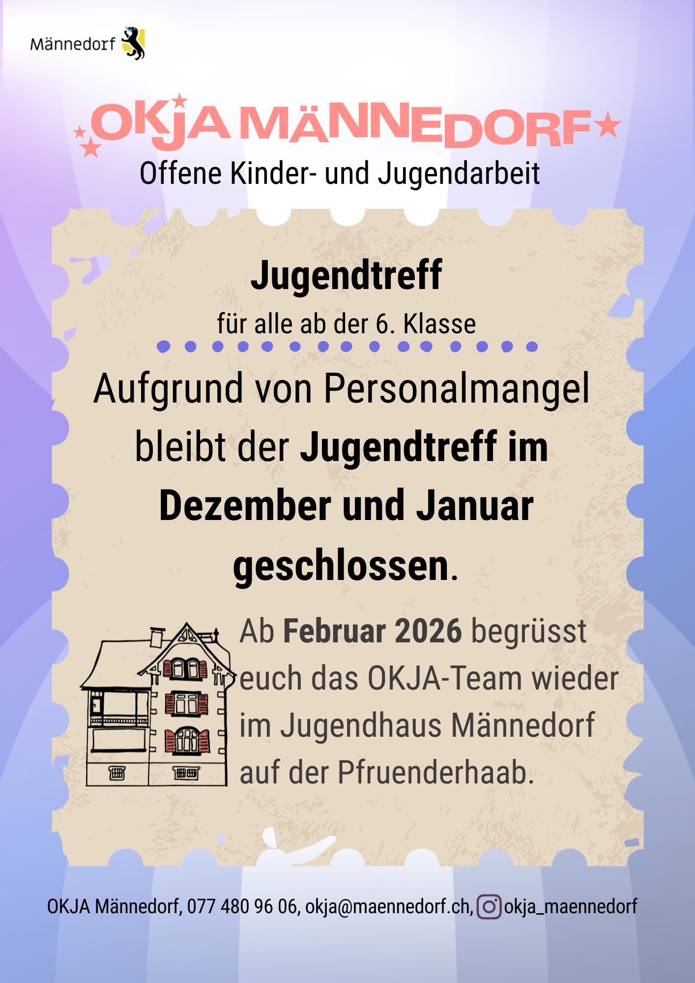 Bereits seit 2003 bietet die Gemeinde Männedorf eine klassische Offene Kinder- und Jugendarbeit (OKJA) an. Seit 2013 beleben die Jugendlichen und das professionelle OKJA-Team das Jugendhaus auf der Pfruenderhaab.